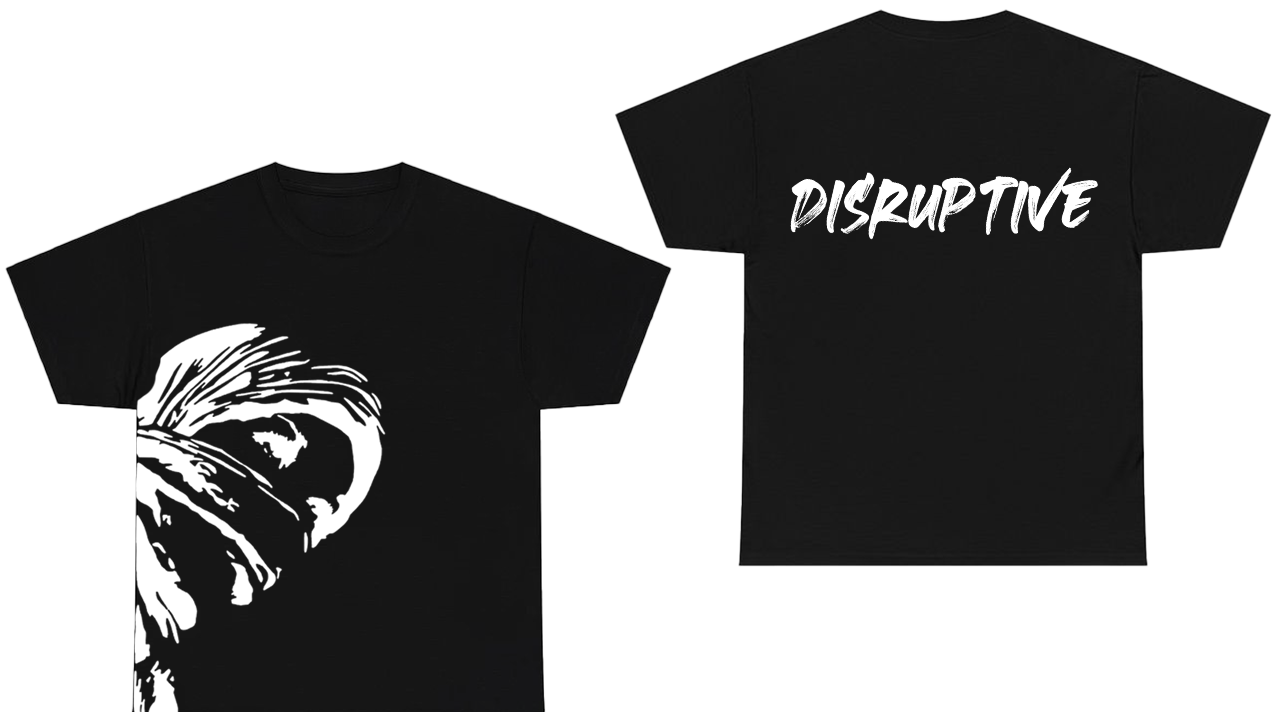 The front features a striking design that explores themes of power, transformation, and global awareness—crafted to provoke thought and inspire dialogue. On the back, our Disruptive brand name serves as a reminder of the power of positive change and the courage to challenge the status quo.